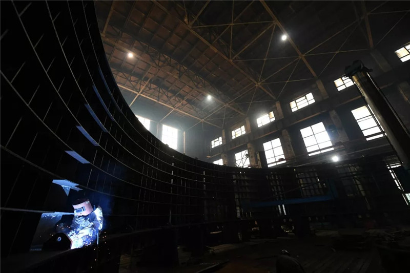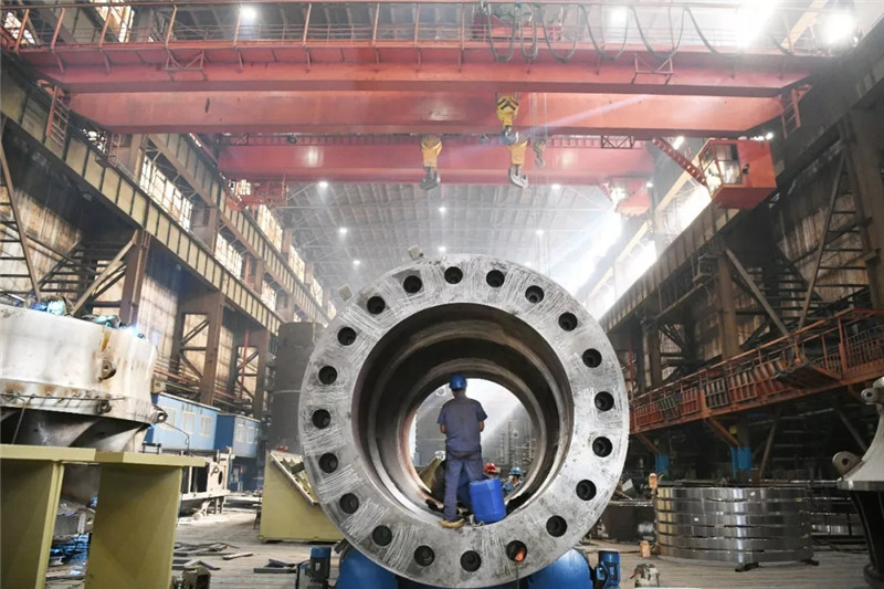 ↑哈電電機(jī)水電分廠車間在生產(chǎn)水輪機(jī)球閥(新華社記者王建威9月2日攝)。